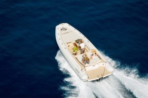 Dylet 85 Introducing our newest boat – a sleek blend of power and luxury. With a commanding 300-horsepower engine, this watercraft offers an exhilarating ride. The large sundeck in the front is perfect for sunbathing, the back area is complemented by plush seating for up to 8 passengers, fostering a social atmosphere. With a striking design and attention to detail, the Dylet 85 redefines aquatic leisure, offering a perfect combination of high-speed thrills and relaxing cruises.
